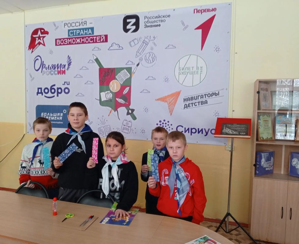 Младшие школьники, «Орлята России», совместно с учителем начальных классов, Гнединой Ю.М. изготовили закладки для книг.