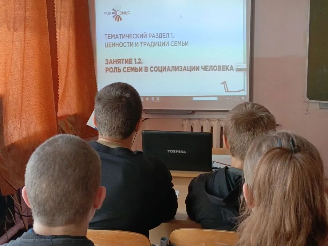 Семья — первый социальный институт, с которым знакомится ребенок, именно в семье усваивается множество навыков и норм, семья играет основную роль в формировании мировоззрения, нравственных норм поведения. Учащиеся познакомились с понятием социализация, обсудили, какие бытовые и социальные навыки привили им в семье, выполняли задания учителя, решали проблемные ситуации. В заключение занятия поразмышляли над высказыванием известного советского педагога В. А. Сухомлинского.