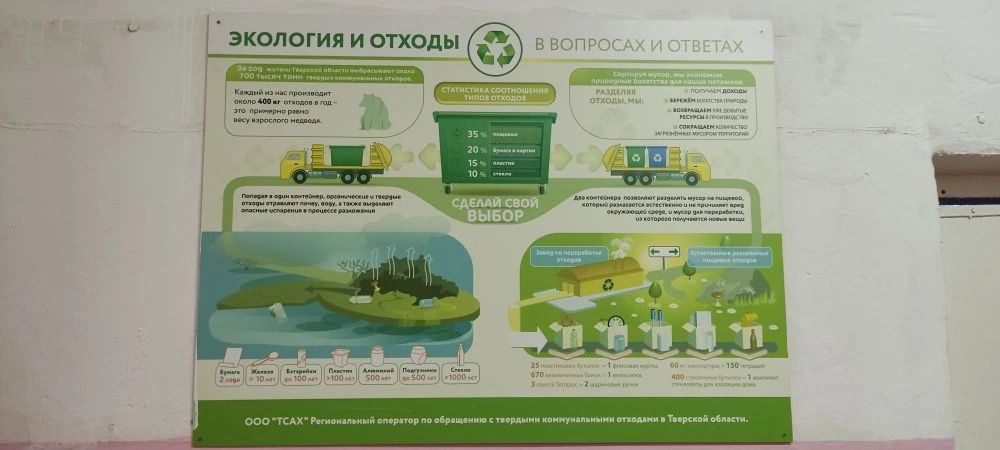 Учащиеся вспомнили, что мусорная реформа в нашей стране реализуется с 2019 года. В Тверской области координатором реформы является региональный оператор ООО "ТСАХ".