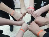 Учая надели КРАСНЫЕ ЛЕНТЫ - символ борьбы со СПИДом.