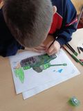 Учащиеся 5 класса работали над рассказом Льва Кассиля "Твои защитники". Дома и в классе ребята читали главы о лётчиках и танкистах, о моряках и артиллеристах, о партизанах и сапёрах. После обсуждения рассказов, ученики нарисовали картинки к некоторым главам книги.