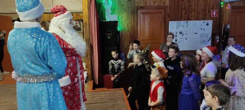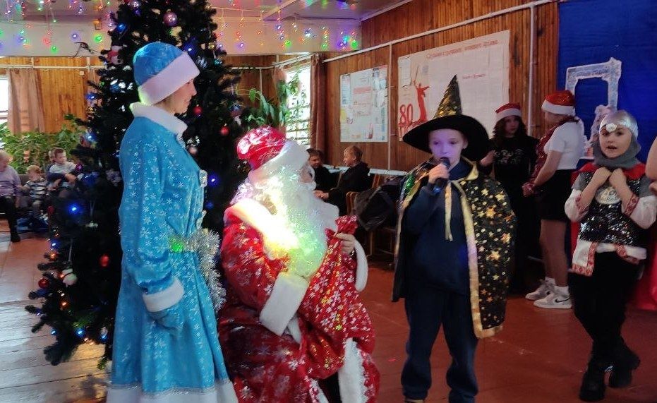 Представьте: зал, украшенный серебристыми гирляндами и пушистыми снежинками, а в центре — величественная ёлка, ждущая своего звёздного часа… И вот под звон колокольчиков на сцену вышли Дед Мороз и Снегурочка!