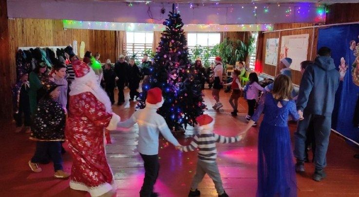 Задорный хоровод вокруг лесной красавицы — все вместе, взявшись за руки, пели любимые новогодние песни.