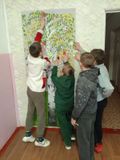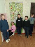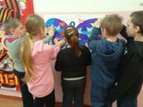 Ребята начальных классов изготовили маленьких бумажных бабочек и прикрепили их на большую бабочку. Этот символ подчеркивает чистоту детских душ, стремление к свободе и светлому будущему.